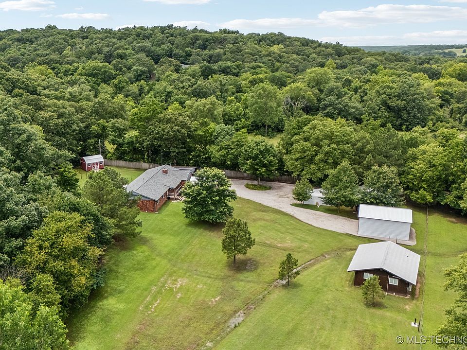 MORE THAN JUST A HOME. Comfortably in a seren park-like setting, a home, music studio, workout studio/hair salon, this must-see property greets you with a picturesque drive across a solid bridge shaded by mature trees. Here, you can relax and reconnect with nature every single day. Beyond the gated entry, discover a beautifully maintained full-brick home new flooring, new windows, fresh paint, and charming car siding that gives a rustic, nature-inspired feel. Enjoy cozy evenings by the fireplace or gather in either of the two living areas. The property also includes a heated and cooled attached garage, plus the 2 studios have half baths, each are 24x23 inside with covered front porches- perfect as guest quarters, hobby spaces, or extra entertaining areas. For your larger vehicles or equipment there is a detached garage on slab, a shed with a loft, and a massive 24x30 building with 12' walls- ideal for an RV, tractor, or boat storage. A peaceful retreat, a place to work from home, or a destination to entertain family and friends, this tranquil haven offers it all. By appointment only. You can go down drive to view. Turn around at sign. Survey Says 4.99ac This home has a EMP & Lightning protection with a lifetime warranty & 30yr roof plus several amenities you must just go view!
