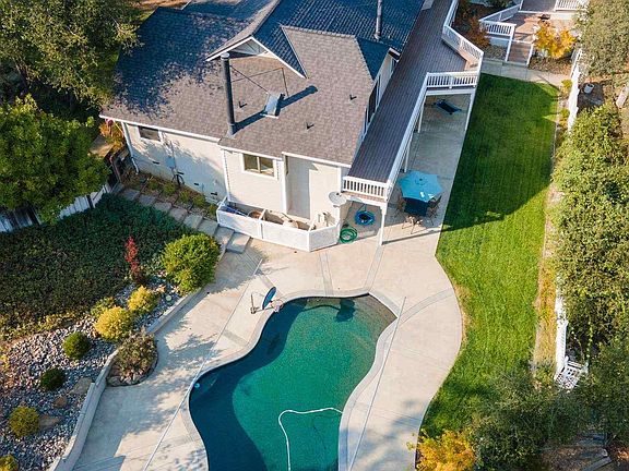 PRIDE & ELEGANCE describe this custom home sitting on a perfect acre of land. Set back from the road, this property is fully fenced offering a lush lawn and in-ground pool. The concrete driveway and parking pad are easy to navigate, with additional parking spaces to the side. An established oak tree greets you at the front and provides ample shade to the front yard. The main level of the home consists of a formal front living room and dining room with built in display cabinets. A quaint sitting room shares the backyard view with the kitchen, and is complete with a real wood burning fireplace. Ample space in the kitchen makes for an enjoyable environment to cook with having an island with a prep sink, breakfast nook & bar and enough cabinets for all your cookware. The laundry room is off the side and doubles as a pantry complete with a sink, cabinets & 2 closets. Down the hall are 2 guest bedrooms, a full bathroom and a master suite offering a soaking tub, stall shower and double sinks. BONUS ROOM below the home serves a multi-purpose space with a fireplace and french style doors to the backyard. An ideal in-law quarters as it offers a bedroom, full bathroom and office. The backyard has no shortage of amenities with a fenced garden, chicken coop, flowers, fruit trees and best of all an IN-GROUND POOL. Comcast Xfinity available. Take the 3d tour for a virtual experience.