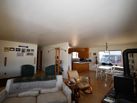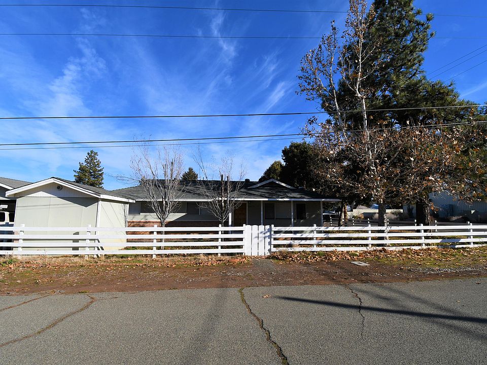 Light and Bright with corner lot conveniently located behind Safeway. Laminate floors throughout with open floor plan connecting the kitchen, dining and living room areas. Hallway leads to three bedrooms. One bathroom in hallway and second bath off the primary bedroom which connects to laundry and kitchen. Brand new forced air heater and AC in 2021. Detached garage with carport and and also storage building. This home has a lot of offer.