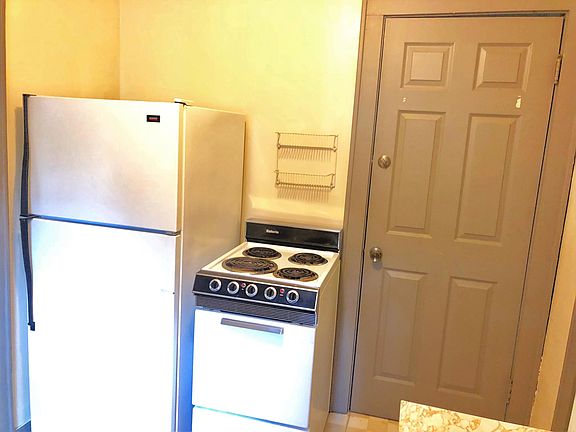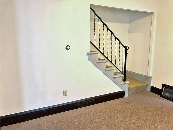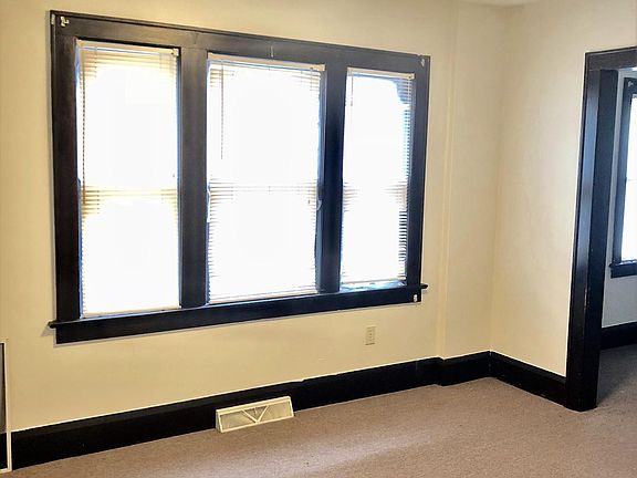 This 2 bedroom 1 bath duplex is ready for your finishing touches. Covered front porch to welcome guests leads to living room with carpet throughout, decorative fireplace, and large coat closet. Open floor plan from living room to formal dining room. Kitchen with economy stove and fridge provided. From kitchen is access to basement, back porch, and parking. 2 bedrooms upstairs with carpet throughout separated by full bathroom. Basement with washer dryer hookups. All private entrances no shared areas with duplex besides parking area and backyard. Call or Text today! Tenants are responsible for all utilities during the term of the lease. Including a Public Utility Deposit.