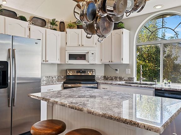Beautiful updated home. Vaulted ceilings. Main floor and 2nd story have updated flooring. Granite counter tops in kitchen. Stainless steel appliances. Convection oven. Water softener. Large water heater is almost new. Jacuzzi tub on main floor. Plenty of storage in basement. Large yard with fruit trees, garden, and two sheds. Extra large driveway. This home features solar panels that will be paid off upon completion of the sale (or assume monthly solar payments and buy home for only $349,000)!