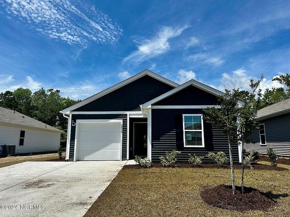 Waterside in the beautiful coastal town of Surf City presents the Sullivan! The Sullivan is a new floorplan designed for efficient living, offering a 1-car garage, 3 bedrooms, and 2 bathrooms. As you move past the Foyer and two front bedrooms, you enter an open concept living space that flows into a spacious kitchen and dining area. The Primary Suite, located at the back, features a walk-in shower, a walk-in closet, and a single vanity. If you're seeking a comfortable and modern home with a practical layout, the Sullivan is a great choice. Waterside Amenities include a swimming pool, clubhouse, fitness room, firepit, play ground, multi-sport court, sand volleyball and walking trails throughout the community. The white sand beaches and the beautiful bluish green waters of the Atlantic Ocean offer a perfect combination of adventure and relaxation. An almost year around mild climate means you can enjoy the warm salty air and all that the area offers year-round. Your new home at Waterside is less than a mile to the new high-rise bridge with a pedestrian lane where you will have sweeping views of the Atlantic when you are at it's crest. Waterside is an easy drive to Wilmington and Marine Corps Base Camp Lejeune and all of the conveniences are nearby. Home Is Connected® Smart Home Technology is included in your new home and comes with an industry-leading suite of smart home products including touchscreen interface, video doorbell, front door light, z-wave t-stat, & door lock all controlled by included Alexa Pop and smartphone app with voice! The photos you see here are for illustration purposes only, interior and exterior features, options, colors and selections will vary from the homes as built