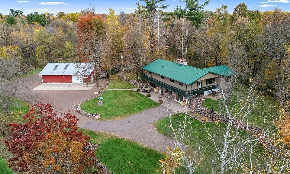 Immaculate, well cared for home on 37 private acres with Knuteson Creek meandering through it. Home features include: main floor wood-burning fireplace, 4 season room with sweeping views, spacious kitchen, main floor laundry, lower level family room with kitchenette and wood stove, 44x48 pole shed that is partially insulated and heated. Easy access to hundreds of miles of all season recreational trails and less than a mile away to the Chetac Lake boat launch.
