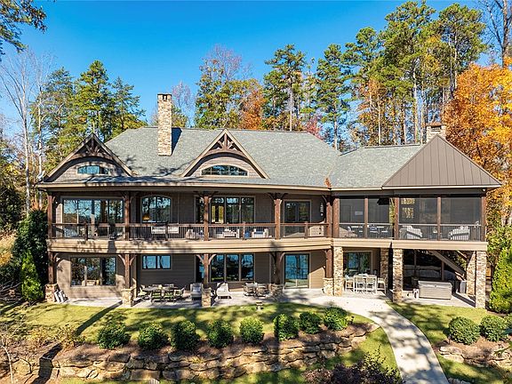 Welcome to 2052 Keowee School Rd, a beautiful waterfront home in the Westwood Bay subdivision with open water views, beach access, and all the features you've been wanting to see. This custom built home was completed in 2017 and has been meticulously maintained by the current owners. The blend of cedar shake, stone, and siding is the perfect mountain/lake aesthetic and blends well with the wooded 1.38 acre property. The 3 car garage, with epoxy flooring and room for additional storage, a flat motor court, and an additional turnaround/parking area provides ample space for friends and family to visit. Upon entry, you're treated to a welcoming foyer with a barreled ceiling and hand-scraped Hickory floors that dominate the main level of the home. The expansive lake views and natural light will lure you into the open living, dining, and kitchen areas. The kitchen is very well appointed with a 6-burner Viking gas cooktop, double Viking ovens, and a Sub-Zero refrigerator. There's ample leathered granite countertop space, and the large quartzite island provides tons of prep or entertaining space. The custom cabinets provide ample of storage, and there's a walk-in pantry as well. The grill deck is wisely located right off the kitchen, is covered, shielded from the afternoon sun, and has a natural gas line ready for your favorite grill(s). The wraparound covered deck and screened porch are great at all times of the day and in all 4 seasons. Enjoy your coffee in the morning or a game in the evening on the screened porch TV, or read your favorite book on the swing overlooking beautiful Lake Keowee. The screen porch has one of 2 stone fireplaces as well. There are two suites on the main level, so you and any guests that prefer to avoid stairs will be comfortable. The owners currently use the guest suite as a study, but it has a gorgeous bathroom with a zero threshold walk-in shower. The owner's suite has long lake views, direct access to the covered deck, dual walk-in closets, and a luxurious bathroom with a soaking tub and a large walk-in shower with zero threshold as well. The terrace level provides 3 guest bedrooms and open entertaining space with a large bar/kitchenette. There are two guest bedrooms on one side and another on the other, as well as a bunk/flex room. The two full baths are nicely appointed, and one has a shower/tub for the younger guests. The lower patio is protected from rain, allowing for outdoor furniture, and the existing hot tub will stay with the home so you can enjoy that or the home sauna that also remains. Just a few feet from the patio is a large flagstone fire pit overlooking the lake—perfect for the cooler nights and winter months. The concrete path goes down to the deep water, covered dock with an underwater anchoring system (no exposed cables), a boat lift, a dock box, composite decking, power, and a water tap. The property line to the left extends into the natural sand beach, giving you another rare and fun feature to enjoy. There's so much to love about this home and property at a location that is close to Seneca and Clemson and less than an hour to downtown Greenville.