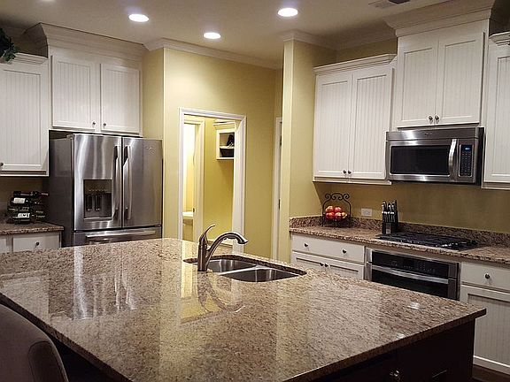 This unit in The Heritage at Dunes West features ''The Crawford'' floor plan. Great open kitchen has a huge island with granite counter tops and stainless steel appliances. The kitchen is open to the great room and dining/flex space. The great room has built-ins and wonderful views of the backyard. Spacious screen porch has a storage room and opens to private green space. Hardwood flooring is included throughout the downstairs. Owners suite has a sitting room overlooking the green space, a large bathroom with a tile shower, tub surround and floors, separate vanities and a large walk-in closet. Also upstairs are two additional bedrooms with a shared bath, a large loft area and the laundry room