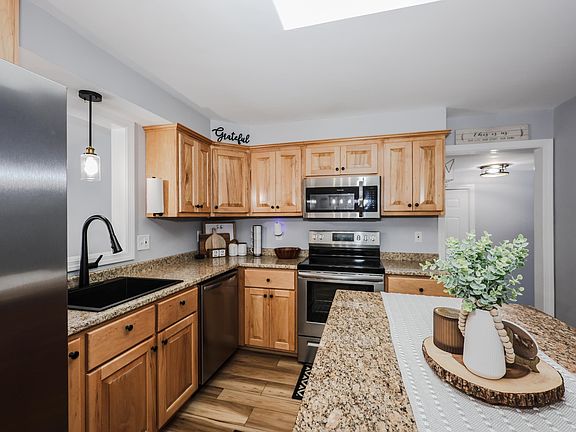 Updated throughout, this home offers a setting you may never want to leave. Every room has been improved, including new exterior vinyl siding, a newer heating system, and a newer roof. Bright natural light fills the interior, highlighting gleaming floors and shiny stainless-steel appliances. The fully finished basement adds valuable living space and includes a new bathroom. Recent exterior improvements include new walkway pavers in both the front and backyard, attractive landscaping, a newly added gazebo, and an additional outdoor storage shed. The garage has been updated with a new door and custom cabinets, providing excellent additional storage. New and updated lighting throughout the home and exterior enhance both functionality and curb appeal. Conveniently located close to shopping, dining, and everyday amenities. Look no further!
