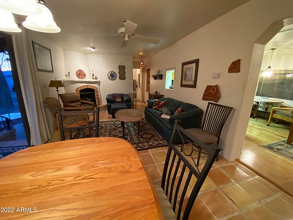 Custom winter get-away with cozy southwestern decor! Massive Arizona room addition with 2nd bathroom, inside laundry, plenty of storage room and unbelievable space to park multiple vehicles! This spacious corner lot will not last long! Large sunny patio with plenty of room to entertain! It boasts a southwestern style fireplace and comes fully furnished! Saltillo tile and wood flooring throughout. Car included at no extra cost!