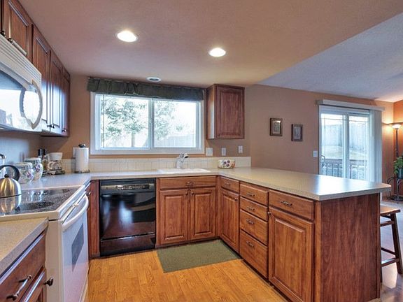 Turn key beautiful home on culdesac W/views and tons of light! Newer everything...Roof, Vinyl windows, gas fireplace, gas furnace, A/C/& air filter, Pergo style floors for easy cleaning, kitchen remodeled W/eating bar & tons of storage, park-like backyard W/large deck for entertaining! Lower level has Office/den or 4th bedroom option W/spacious family room & fireplace. Nothing to do but enjoy your new house.