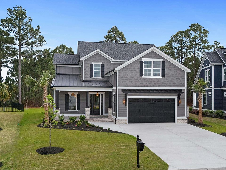 Discover your dream home at 2052 Summer Rose Lane, Myrtle Beach, SC 29579, perfectly situated in the prestigious Waterbridge community within Carolina Forest—Myrtle Beach's rapidly expanding area. This newly constructed marvel offers 3,640 sq ft of heated living area and a total of 4,603 sq ft, marrying modern sophistication with traditional Southern elegance. The main level showcases a splendid master suite with beam ceilings and a luxurious bathroom featuring a floor-to-ceiling tiled shower. This level also hosts an additional bedroom, a home office, and a chef's dream kitchen with custom cabinets, a unique range hood, wall oven with convection microwave, slide-in gas range, and an additional electric stove. A bar area with a beverage center rounds out the culinary space. Upstairs, find three more bedrooms, a versatile bonus room, a flex room, and ample attic storage. The home is adorned with engineered hardwood floors throughout and tile in all wet areas, reflecting its quality and style. The convenience is further enhanced by a spacious laundry room with extensive cabinets and an oversized two-car garage with epoxy flooring. Living in Waterbridge affords access to top-tier amenities, including South Carolina's second-largest residential pool, lazy rivers, tennis and volleyball courts, pickleball, a well-equipped gym, and a 60-acre freshwater lake. Embrace unparalleled living in the heart of Myrtle Beach at 2052 Summer Rose Lane—your ultimate forever home.