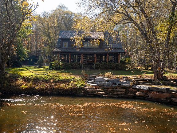 This stunning hand-hewn log home, located on the banks of the Hiwassee River, offers a perfect escape on 4.22 acres. Experience exceptional outdoor living on the full-length back porch, with rustic log posts and beautiful stonework. Unwind by the riverside patio, featuring a fire pit area with approximately 350 feet of frontage on the Hiwassee River. Embrace the lodge-like atmosphere inside, highlighted by a grand cathedral ceiling accented by beamed wood, wood-chinked walls, and a handsome stone fireplace. The chef's kitchen is a culinary dream, complete with a commercial gas range that includes a grill, a Sub-Zero refrigerator that complements the warm cabinetry, and Vermont soapstone countertops combined with custom Mexican tile floors. On the main level, the primary suite offers private access to the rear porch through French doors, along with a cast-iron pedestal soaking tub and a separate shower, combining comfort with elegance. The upper level features a loft with a sitting area, custom built-ins for display, and a guest ensuite that provides a similarly spa-like experience as the primary suite. The property has been well-maintained and upgraded by the owners, showcasing a newer roof, septic system, HVAC system, studio/workshop, detached carport, and riverside patio. In addition to the upgrades, the established landscape design enhances the overall curb appeal of this riverfront sanctuary. Easy drive to Hayesville's local retailers and restaurants. Fiber optic internet now connected at the home.