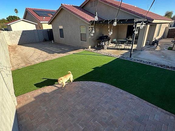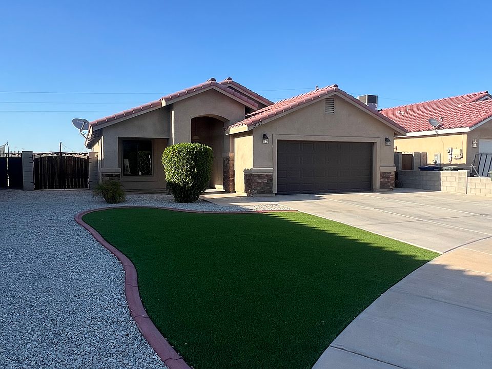 Move in ready and furnished 3-bedroom, 2-bathroom home located on the cul-de-sac. This home offers a modern and stylish design with tile flooring throughout, providing a sleek and clean look. The kitchen features stunning quartz countertops with all appliances. You'll also find a convenient washer/dryer, water softener and reverse osmosis system. With a two-car garage and a double side gate, you'll have plenty of room for parking and storing your vehicles. The primary bathroom features double sinks and new tile shower. Outside, you'll find low-maintenance landscaping with artificial grass front and backyard. Located close to West wetlands park. If interested please submit Zillow application. Serious rental inquiries only. 1 year or more lease only. Proof of steady income, background check and rent history required by Zillow application. No section 8.