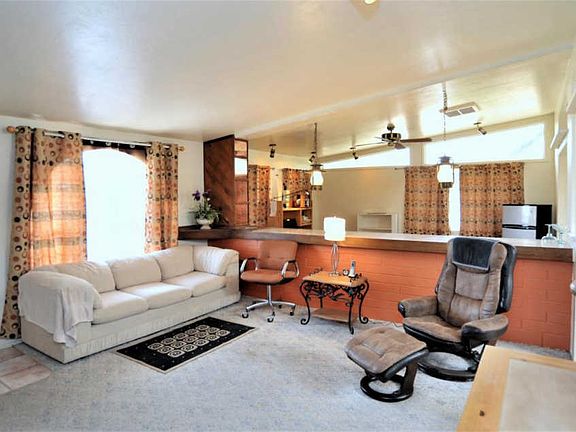 Beautiful home at excellent price. Corner lot with potential to convert storage room with electricity into guest house/quarters. Great cosmetic touches throughout with custom cabinetry, huge walk-in closet, skylight lighting & built in decorative nooks. Room off living room could be home office or formal dining area with bar seating in between. Kitchen offers breakfast nook & plenty of cabinetry. Laundry room includes second, brand-new high quality stainless steal appliances, oven-stone with counter tops and extra upper & lower cabinetry. All bedrooms have carpet flooring & ceiling fans. Master bedroom features glass sliding doors leading to backyard & wall A/C Unit. Large backyard includes raised wood deck, plenty of tree shading, covered patios with gorgeous Mountain & Sunset Views!