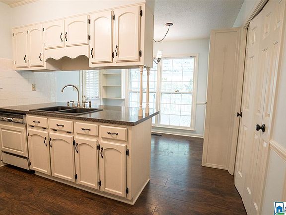 Hoover Schools! 3 Bd 2 Ba well-kept home in quiet neighborhood. Convenient to I-459 and just a few minutes from the future-planned Publix on Morgan Road. Beautiful laminate flooring throughout. Custom plantation shutters. Gas fireplace in living room and gas cooktop in kitchen. You have many choices for storage space in this home such as two pantries in the kitchen, walk-in closets in bedrooms, and several other closets on main level. Enjoy sitting in the shade on the covered back deck with ceiling fan and beautiful trees in the backyard,. Hydrangeas, maples, irises, etc. Birdhouses and lovely landscaping! Tax record shows over 1400 sq ft basement which consists of large 2 car garage plus bonus areas used for storage and workshop. Tons of storage/shelving. Cabinetry, worktable with electrical outlet and pegboard. Perfect for the guy or gal who loves to build or work on projects!