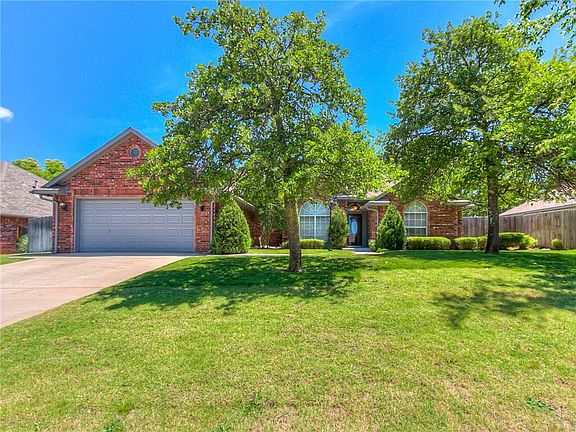 Stunning & move-in ready. 4 bedrooms, 2 bathrooms, a huge open living room, high ceilings, fireplace, spacious kitchen with breakfast bar, great flow and layout, an abundance of natural light, 2nd dining room off of the entry could also be used as a study, tons of storage, large bedrooms, storm shelter, and more. Neighborhood parks, trail, stocked fishing pond, & manicured greenbelt. Located close to shopping, dining, highway access, Tinker AFB, Boeing, & Rose State College. Call today for a private showing.