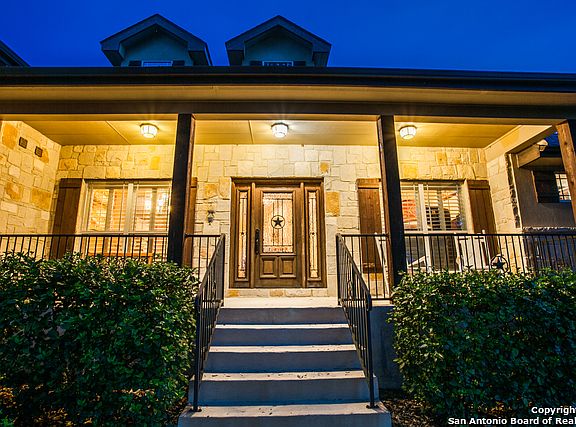 Custom built inside & out & offers it all! Lrg front porch completely shaded by mature Oak trees! Walk inside to lrg vaulted lvng room w/ custom faux finish paint & oversized stone fireplace. Master (wired for surround sound) secluded & is fully loaded...dbl sided fireplace to enjoy in master bdrm or jacuzzi bath tub; master closet offers custom cabinetry w/ tons of storage; bonus room up w/ full bth; lrg kit w/ lots of cabinets; bckyrd offers heated pool & spa w/ firepit, covered wrought iron dog run.