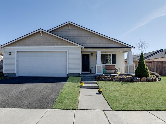 Charming single-level home in desirable NE Bend. Stunning mountain views throughout theneighborhood. Located in a covetable area near new restaurants & shopping; Cascade Village & highway access nearby. Newly updated neighborhood park maintained by Bend Parks & Rec. Remarkable curb appeal with inviting covered front porch that overlooks manicured front yard. Great room layout offers an optimal, open flow between the kitchen, dining, and living areas. Gas fireplace in living room makes for a cozy setting. Vaulted ceilings, abundant natural light, & advantageous floor plan - this home lives larger than its square footage! Beautifully maintained property with ideal amenities such as air conditioning, fully-fenced & landscaped backyard, upgraded stainless steel kitchen appliances, an attached double-car garage, and muchmore. This move-in ready home has it all!