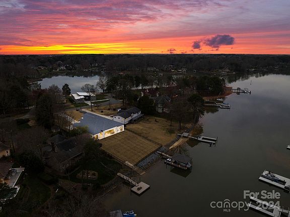 Luxurious one-level lakeside living on Lake Norman. Built two years ago with w/custom craftsmanship & design to create an exquisite home. Elegant driveway with diamond accents takes you past the 3-car garage to the beautiful arched glass door entrance. Light-filled foyer opens to great room with 12" ceilings throughout & 7" white oak flooring. Stunning kitchen w/ Wolf & Subzero appliances, 48-inch dual fuel range w/ custom zinc & brass hood, & leathered quartzite countertops. A glass-surrounded dining room offers expansive lake views. 3 sets of bi-fold back doors open to an outdoor living space, including built-in kitchen, recessed heaters, fireplace, TV, & outdoor half bath. Backyard leads to covered dock & boat lift w/ Wolf Serenity decking. Custom features incl. iron front & garage doors plus marble finishes, quartz countertops, Emtek hardware, Windsor windows & doors, & epoxy garage floors. An entertainer's dream while offering tranquility with year-round vacation-like views.