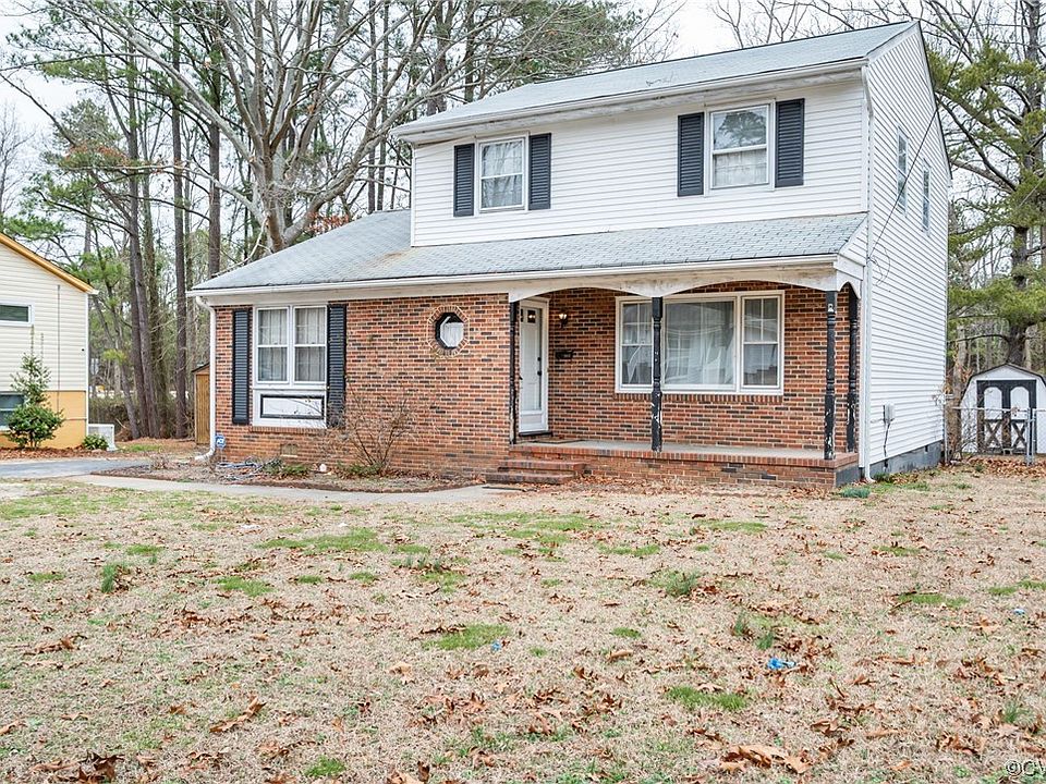 COME VISIT THIS CHARMING 4 BDRM 1.5 BA 2 Story home located in the Pine Gardens Subdivision in Petersburg. The first level of this home features a spacious living room w/ PIC window, Formal DR w/ CHR MLDG, Family room w/ C/FAN, & NEW laminate floor, could also be used as a 1st floor bedroom, kitchen w/plenty of freshly painted gray cabinetry, NEW GRAN C/TOPs, NEW LVP, BLK/SS APPL, utility closet, Laundry room w/ NEW LVP & ½ bath w/ single vanity w/storage complete the first level of the home. The 2nd level of this home features NEWLY refinished HDWD floors throughout, a Primary Bedroom w/ C/FAN, two ADD bedrooms w/ C/FANs & ample closet space , a linen closet, shared hall bath w/ C/TILE floor, tiled tub/shower combo & NEW single vanity w/storage & pull down attic storage complete the space. This home boasts FRESH paint throughout, NEWER HVAC upstairs unit 2021, NEWER roof 2021, detached storage shed and fenced in backyard great for pets or entertaining friends and family. Located close to shopping, dining & entertainment. This home is a MUST SEE! SCHEDULE YOUR TOUR TODAY!