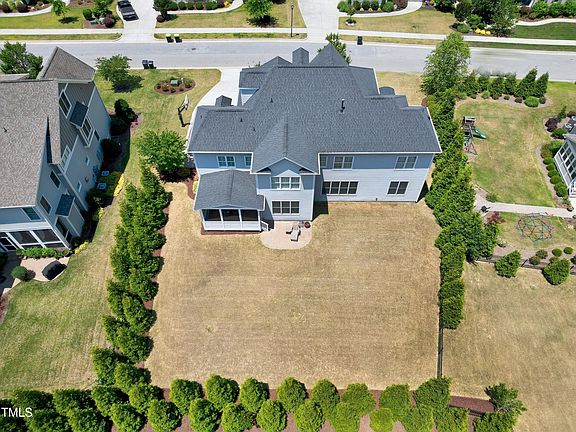 EXCEPTIONAL Custom home with 2 story foyer and overlook. Main level Guest Suite or office. Coffered ceiling in beautiful formal Dining room - Vaulted ceiling in spacious primary. Elegant & Beautiful front stairway - purposeful rear staircase off drop zone/mud room. Each oversized bedroom has it's own private bath and large walk in closet! Spacious laundry room with direct access to upstairs hall and primary closet. Large primary bedroom, spa - like bath TREMENDOUS closet. Open gourmet kitchen with designer Granite, backsplash and stainless steel appliances - large walk in pantry and bright and sunny breakfast room open to expansive family room with fireplace and custom built-ins all open to large screened porch. GLEAMING 4'' hardwoods through 1st floor except 1st floor guest suite. Flagstone floor on front porch, stone steps, beadboard ceiling. Sealed crawl! Large walk up attic for future expansion. Mudroom off garages - exceptional neighborhood amenities - walk to the AMAZING Town of Apex Park!