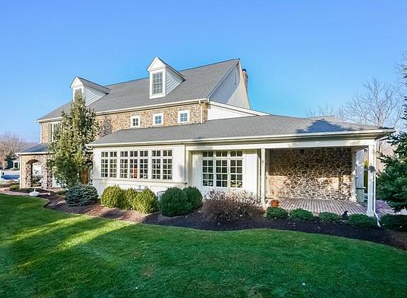 Craftsmanship and attention to detail are evident throughout this Stever Mills Carriage house. The open floor plan is perfectly paired with one-of-a kind details.The chefs' kitchen is an entertainers dream with granite countertops, huge center island, top of the line appliances and a wall of windows. The kitchen flows seamlessly into the dining room and expansive great room making it an incomparable gathering space with adjacent butlers pantry and wet bar. The 1st-floor master suite is a private oasis with a large walk in closet, full bath with double sinks, a jacuzzi tub and a separate stall shower. In addition to two generously sized bedrooms, each with a full bath, the second floor boasts an enormous media/entertainment room big enough for any interest or enjoyment. The covered porch plumbed for raidiant heat can easily be enclosed and has an adjoining patio. All this conveniently located close to the Saucon Valley CC, with easy access to major hwys 78 & 22. Move right in and enjoy!
