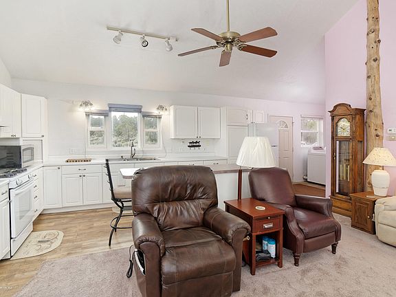 RANCH STYLE HOME ON ACREAGE . . . Your private 40 acres bordering BLM and the privacy one desires. Bring the animals, the arena, fencing and 25' x 50' barn are all set up. The adjoining 40 acres could be purchased for $100,000, (MLS #163624). The home has vaulted ceilings, tons of windows and skylights to capture the views and sun. The kitchen is open to the living and dining and log accents to give the mountain feel. The private office in the basement has a separate entrance. Call today for a private tour.