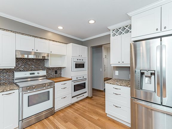granite countertops, a large island, a second wall oven, and hardwood floors. The guest bath on this