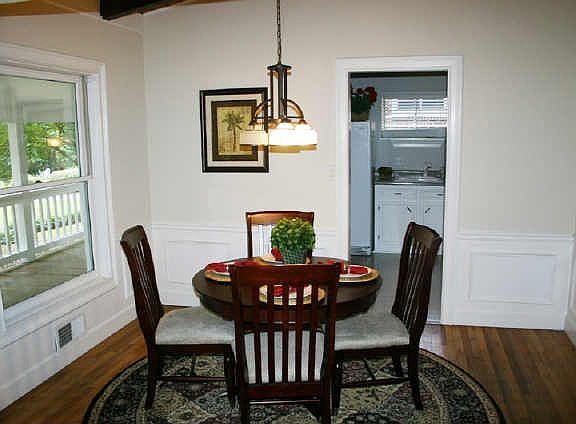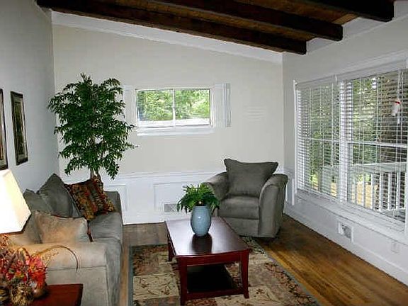 Adorable Mid-Century Ranch. Freshly Painted inside and out, ready for you to move in! Long Tree Lined Driveway leads to Fantastic Rocking Chair Front Porch. This home has Exposed Beam Ceilings Throughout. Cozy Living Room and Separate Dining Room with Hardwood Floors, Cute White Kitchen (All Appliances Included), Hall Bath, Master Bedroom with Private Bath and Two Additional Bedrooms. 3RD Bedroom has French Doors to Nice Deck. Neighborhood Description Great neighborhood. Minutes to Buckhead & Midtown. Easy access to I-85.