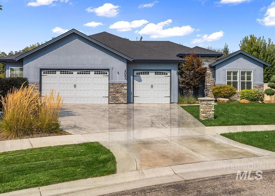 This custom-built home on 1/3 + acre lot, offers exceptional privacy with no rear neighbors and beautifully manicured landscaping in expansive backyard. Inside, you'll find two luxurious primary suites—one thoughtfully secluded from the main living areas for added comfort and privacy. The home features an oversized three-car garage with durable epoxy flooring. Soaring ceilings are adorned with elegant beams, crown molding, coffered details, arches, and alcoves, creating a sophisticated and open atmosphere. The gourmet kitchen is a chef’s dream, equipped with a 36” stainless steel, six-burner gas cooktop, double convection wall ovens, a separate microwave, and a butler’s pantry with custom cabinetry. Additional highlights include a natural wood-burning fireplace, shutter window coverings in primary suites, numerous windows throughout the home, large separate laundry room with ample cabinetry, and a built-in desk in the mudroom—perfect for organization and everyday convenience.
