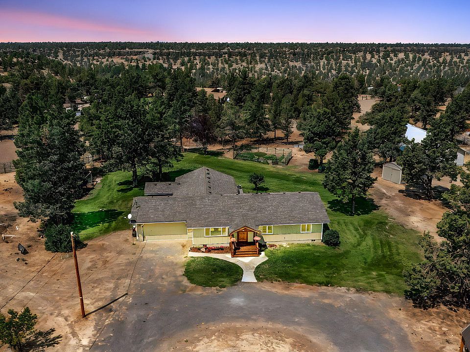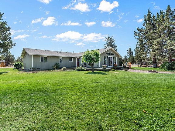 This charming ranch home on 5 acres in Odin Crest Estate is ready to call yours! Property is fenced for horses, while the house has 4 bedrooms, 2 bathrooms, large updated farm kitchen w/ granite countertops, copper sink, and a butcher block island, and a sizable family room with vaulted ceiling and brightly lit views of the back deck and property spaces! The big backyard with expansive sunny deck is perfect for soaking up the blue sky days or having cozy evenings out by the fire pit. 36x48 finished shop/barn, chicken coop, and backyard shed are included. Don't miss your chance to own this rural property in a peaceful setting, just minutes from Redmond!