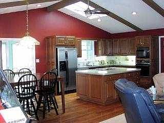 Impressive & Surprising 1 sty, 2145 sq.ft.hm. Dramatic Open Great Rm host brick wbfp,cathedral beamed ceiling,bow wind,eat-in kit w/hdwd,island, stainless appl & sliders to 4 season porch. Lg 2.5 cr w/stairs to 1756 Bsmt w/incredible 28x24 wksp & 33x20 area waiting to be finished.1st flr lndry, mstr bth & Hm Warr. Ask for Improvement list! Extremely Deceiving!
