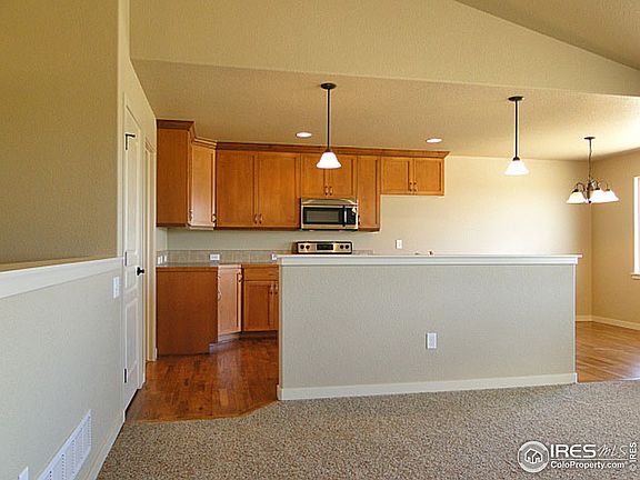 Incredible new construction by one of Northern Colorado's most respected builders. This open ranch style home includes an open floor plan, vaulted ceilings, wood floors (kitchen/ dining /entry), stainless appliances (side by side refrigerator/smooth-top range/dishwasher/microwave), granite kitchen countertops with tile backsplash, European alder cabinetry with 42 inch uppers and crown molding, walk-in pantry, air conditioning, 8 foot garage door with opener. Photos are of a model home.