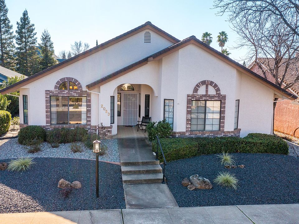 Welcome to The Vineyards gated 55 plus community. This beautiful home is almost 1700 sq feet featuring 2 bedrooms and 2 baths with an office. Featuring a spacious layout allowing for a large kitchen w/ island, nice size spare bedroom and master ensuite. The additonal office creates an extra room with built in shelving. Pride of ownership shines throughout w/updated engineered hard wood floors, newer HVAC (2014), roof (2017), hot water heater (2021), rear sliders, and exterior paint. The backyard offers peace and quiet with a gardeners touch making it a serene setting to relax. Also has electronic sunshades for the hotter Redding summers. Don't miss this one