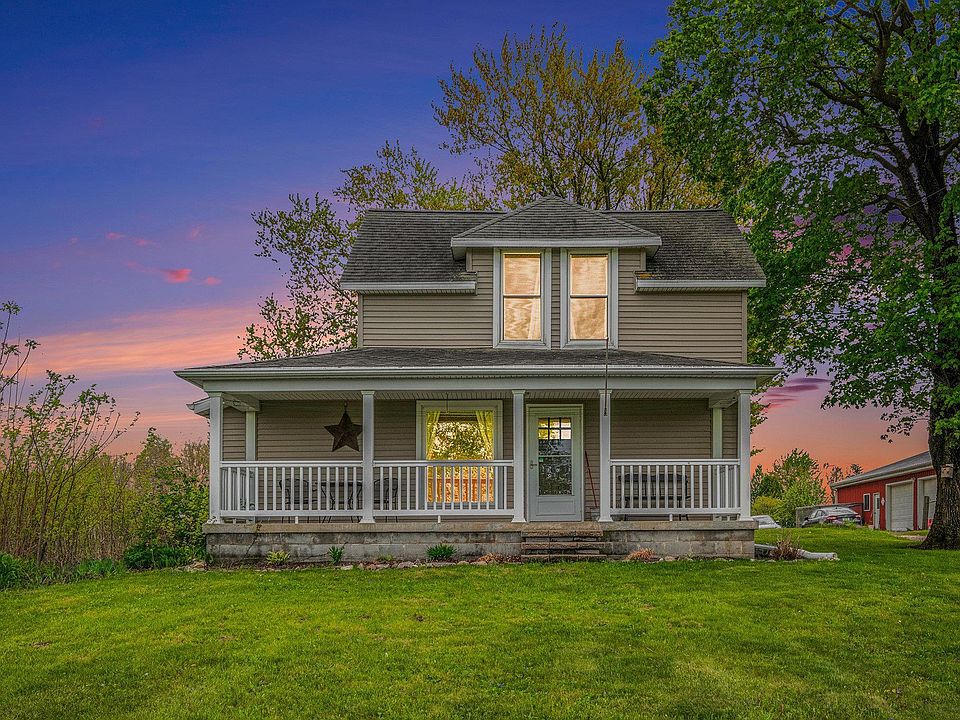 Discover countryside living on 3.2 scenic acres with this spacious two-story home offering 2,132 square feet of thoughtfully designed living space. This well-appointed residence features four bedrooms and two full bathrooms, providing ample room for comfortable living and versatile spaces. The main level showcases a practical layout with a conveniently placed laundry room and a kitchen that flows seamlessly into the dining area. Modern conveniences include a stove/oven, microwave, dishwasher, and refrigerator, enhancing the kitchen's functionality. Step outside to enjoy the covered front porch and expansive deck - perfect settings for taking in the peaceful rural views. A standout feature of this property is the substantial 56x36 pole barn, offering extensive storage or workspace possibilities. The unfinished basement and provides additional storage options . This property's generous acreage presents numerous possibilities for outdoor pursuits, gardening, or simply enjoying the privacy of your own slice of countryside. The raised garden beds and chicken coop are already in place for those interested in sustainable living and home agriculture. Located within the respected Warsaw school district, this home combines the serenity of country living with convenient access to daily necessities. At $329,900, this property offers exceptional value for those seeking space, privacy, and the freedom to create their ideal lifestyle. Home Details: hot tub negotiable, full bath updated in 2024, deck added in 2020, furnace/AC/water heater 2012, water softener 7 years old windows & roof 10 years old, home re-insulated 3 years ago.
