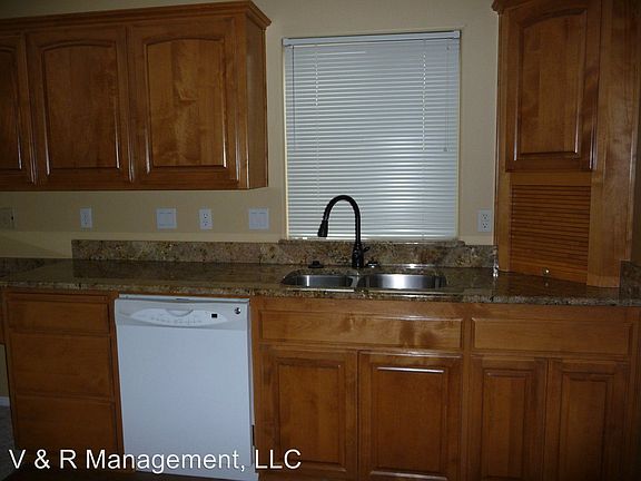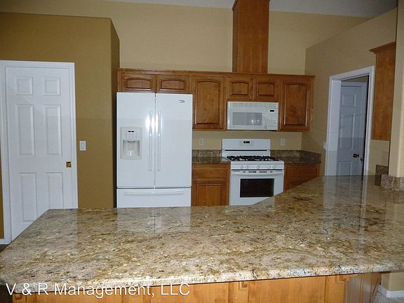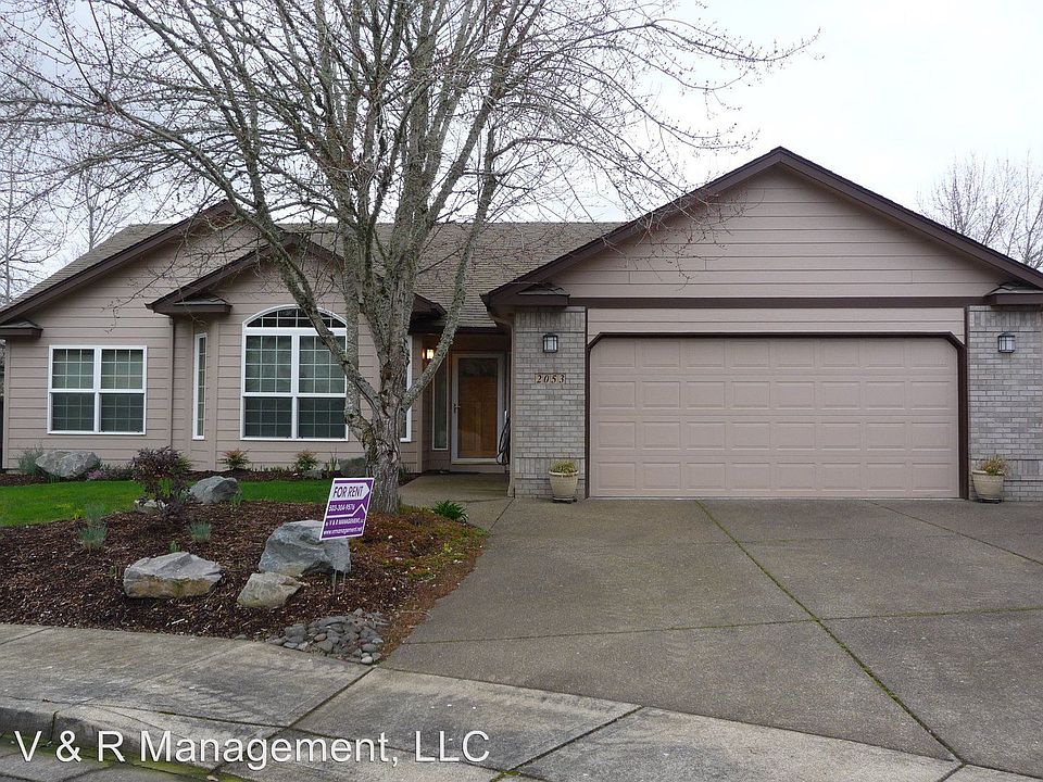 Spacious, West Salem Home - 1769 sq. ft. home, Single level Granite counters, newer carpet Vaulted ceiling Very large master bedroom with access to patio, walk in closet with pull down ironing boards. 3rd room has no closet but could be used for office, separate living room, etc. Family and kitchen are great room Lots of cabinet space and storage Double garage, wide drive way, space for RV (limited to 5 vehicles on site) Landscaping included, backyard is mainly large patio Appliances: stove, disposal, DW, microwave (refrigerator is for sale) Inside utility room with cabinets and large sink. Gas heat, AC, storm doors (RLNE4715324)