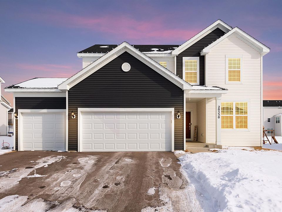 Almost "New" Lakeville home in sought after Linden Ridge neighborhood with all the upgrades! Main level features open concept, quartz kitchen countertops, huge center island, living room shiplap accent wall + modern gas fireplace +custom built-in cabinetry. New maintenance free deck, inground sprinkler system, and hottub! Main level den/office, mud room has built-in bench, and desk. Master Suite with large walk-in closet, custom California Closet built-ins, master bath with tiled walk-in shower. Upper level loft, and laundry. 3+ car garage has new epoxy floors. Lower level has 1000+ unfinished sqft with rough-in for full bath, space for 4th bedroom, family room, and storage.