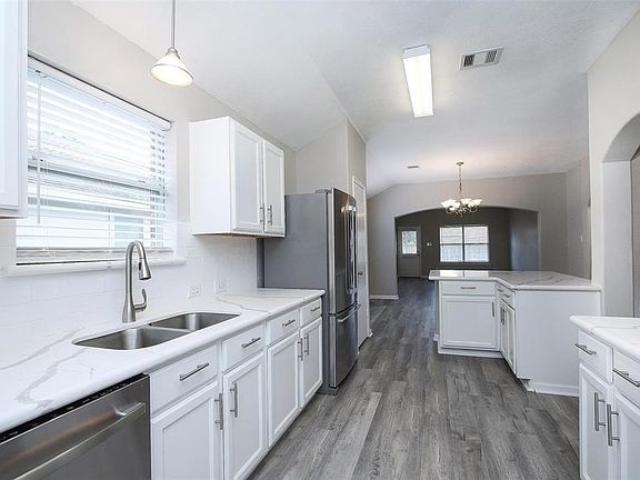 MOVE-IN READY! Charming one story 3BD/2BA/2GA with covered front porch in Canyon Lakes West community. This home has been completely updated in 2021. Luxury vinyl wood in entry, kitchen, dining, living and hallway. Other recent updates include carpet, interior paint, fence, double oven and dishwasher. Gourmet kitchen features quartz counters, subway tile backsplash, freshly painted cabinets with new hardware, double sink and faucet. Open kitchen, dining and family rooms, breakfast bar for casual dining. Private primary suite with tray ceiling. Ensuite bathroom with new vanity, sink faucet, and quartz counters. Secondary bath also have a new vanity, sink and faucet. Resort style amenities include stunning lakeside pavilion and walking trails. Zone to the highly rated Cy-Fair ISD. Easy access to SH 290, Highway 6, 99 Grand Parkway, shopping, dining and entertainment.