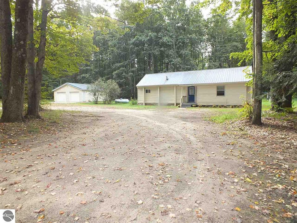 Horses welcome! A gorgeous 3.3 acre parcel with towering hardwoods is the perfect setting for this 2 bedroom, 1 bath home. Spacious kitchen with tile floor and breakfast bar, a large bathroom with laundry, sliders to a back deck and a metal roof. The 26 by 34 pole building built in 2009 with metal roof, vinyl siding and concrete pad and concrete floor has two overhead doors that measure 7 ft. high by 9 ft. wide. A small horse barn and horse corral are also included!