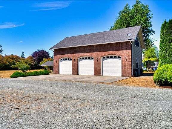 Welcome home to your 2.5-acre custom estate in Conway! Minutes from I5! Spectacular gated entry leads to the 2100 sq ft rambler + detached shop w/ additional living space above. Contemporary country style offers peace & comfort. Front door opens to recently refinished hardwood floors, open concept kitchen, vaulted ceilings, and incredible river rock fireplace. A/C all throughout home. Primary bedroom has a walk in closet & attached full bath. Detached shop features full kitchen, 3/4 bath, heat throughout & 2 additional bays once used as wood working shop. Massive area above shop has 2 separate rooms. Detached RV carport features RV hookups and plenty of room for equipment. Fully fenced 2.5 acres offers plenty of room for pets & animals.