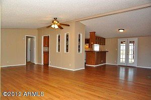 Remodeled home is neat, clean, and fresh with updated wood flooring, carpet, and paint throughout. In the kitchen you will find oak cabinets with a breakfast bar and new appliances. Even the laundry room is over-sized with cabinets and counter-top. Ceiling fans are found throughout for energy savings. There is plenty of room to roam on this fenced 1.25 Acre lot with horse privileges that boasts trees, grass, and beautiful mountain views. Its perfect for horse corrals, out-buildings, separate garages, and workshops. French doors from the kitchen lead out back to the 12 X 36 covered patio thats perfect for relaxing and entertaining. Check out the photos and virtual tour and see how inviting this open floor-plan is.