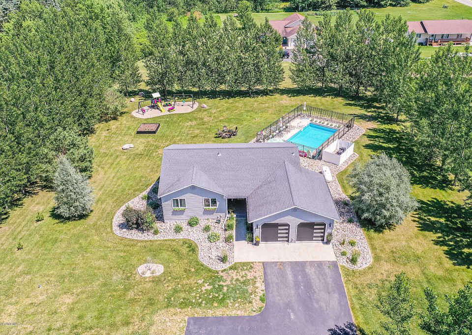 Spend hot summer days in the heated in-ground pool of this stylish 4 bedroom, 3 bath one owner home on over an acre of secluded land just outside Detroit Lakes. This gorgeous property features quartz counters throughout, kitchen with newly tiled backsplash, living room with vaulted ceiling, main level master bedroom with tiled accent wall, master bath with walk-in closet, finished lower level with family room and entertaining area with bar, 2-stall attached garage, beautiful landscaping and fantastic deck perfect for entertaining.