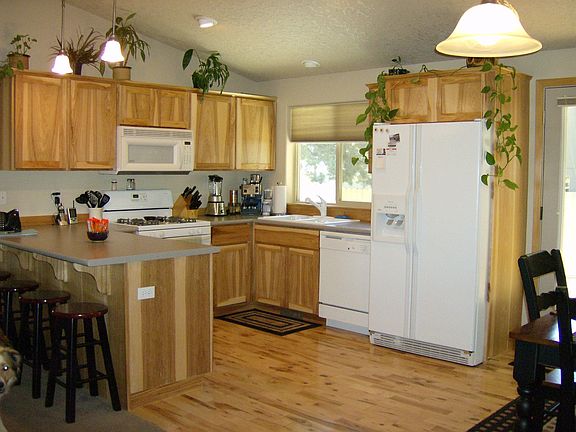 Professionally landscaped & fenced yard encompasses this great home with hardwood flooring in kitchen & entry as well as several seller-made upgrades including fenced deck, pergola over the patio, a/c, 2 Solatubes, woodstove for alterntive heat and slate kitchen counter are just a few.