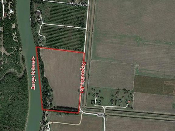 Long Oak lined drive leads up to the wooded lot on the Arroyo where the home sits with a great water view. There is approximately 613 feet of Arroyo frontage and 598 feet of Reynolds Rd. frontage. There is a detached barn with 1,500 sq. ft. and a small maid's house or caretaker house. Home has not been updated. Staggered retaining wall down to the water. There is a shop/ man cave, in the garage area. Plenty of land to subdivide and sell off if needed. The Base taxes shown is on the home and agricultural value on the land. Timbers crossed lines the drive to the home and in front. The porch is on 3 sides. Home to be sold as is. Additional 10+ acres on Arroyo available for $180,000.