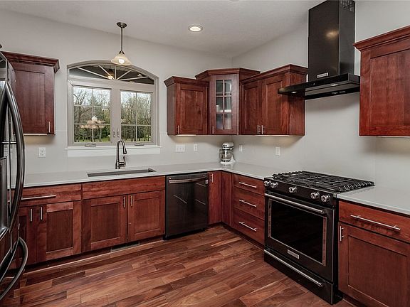 Ranch 5 beds/3.5 bath w/over 3,765sqft finished on 4.64 acres w/Geothermal! Fantastic location-off pavement; close to Adel and easy interstate access to WDM. French entry doors open to the living room w/gas fireplace and vaulted ceiling. The kitchen/dining area have been upgraded w/new quartz countertops/backsplash and upgraded Kitchen-Aid/LG Appliances including gas range and vented hood system. The owners suite has dual walk-in closets, en-suite bath has dual vanities, tiled shower & jetted tub. The main level also features 2 additional bedrooms, full bath, laundry room, and hall bath for guests. Upstairs is a bonus room above the garage for a second living room/play area. The basement includes a large living room w/daylight windows, 2 additional bedrooms and 3/4 bathroom. The oversized 900sqft garage is extra deep on the 3rd stall. Outside enjoy the large covered front porch & covered backyard deck. Acreage living w/chicken coop or huge fenced garden for all your green thumb goals! All information obtained from seller and public records.