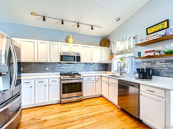 Welcome to your next home in Parker, Colorado. This 3 bedroom/3 bathroom home offers ample space for comfortable living. Expand your lifestyle with the basement flex space with brand new carpet and hardwired for surround sound to a private office, game room...you decide. From the moment you step inside, you'll experience the sunlight fill the home and your heart. The newly remodeled eat-in kitchen features quartz counters, LG stainless appliances with a five burner gas range and griddle top. Plenty of cabinets and a pantry provide lots of storage options. Cathedral ceilings give the space an open feeling while you enjoy the view of the professional landscaped yard. The kitchen opens to the family room anchored by the fireplace and direct access to the fully-fenced private yard and flagstone patio, ideal for al fresco dining or simply soaking up the Colorado sunshine. Enjoy your mornings from the tranquility of the yard or from your covered from porch with newer Trex decking. You'll appreciate the retaining where planting your your favorite perennials is a breeze. The primary bedroom suite with a full bath and walk-in closet. Two other bedrooms are located on the same level with a second adjacent full bathroom. Bathrooms each have new quartz counters, new sinks and new faucets. New roof in 2023. Furnace and hot water heater installed in 2020 and 2019, respectfully. Not only is this a fantastic home, but you're anchored in the Hidden River community where trails are at every turn. Walk to one of many parks and trails just a block from the house. Enjoy the community pool, park and tennis courts where neighbors and friends connect and make great memories.