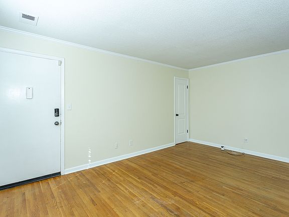 1 BR 1 BA Downstairs unit at Montreat. Hardwood floors in the living room, new LVP floors in dining room, hallway, kitchen and bedroom. Bathroom has new tile floor, new vanity, sink and toilet. New HVAC unit both inside and out. New fridge with icemaker, new stove, oven and dishwasher. New countertops, sink and faucet. New paint on all walls including trim and new baseboards. Stack washer and dryer included. Very quiet setting, bedroom window overlooks the park like setting with pool and tennis court. Assigned parking space just steps from the front door. Four sides brick building is very solidly built, quiet and safe. Two year minimum lease.