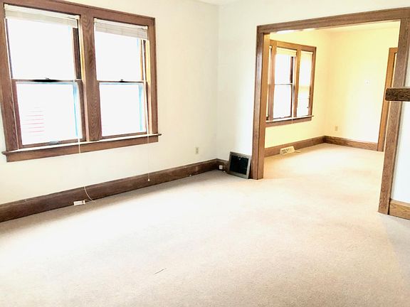 Covered front porch Decorative fireplace Open floor plan from living room to formal dining room. Kitchen with stove and fridge provided. From kitchen is private access to basement, back porch, and parking. 2 bedrooms upstairs with carpet throughout separated by full bathroom. Basement with washer dryer hookups. Move In Ready! Tenants are responsible for all utilities during the term of the lease. Including a Public Utility Deposit and if applicable a Pet Deposit.