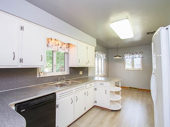Basement square footage nearly DOUBLES total living area! Comes out to less than $50 per square foot on double lot! Walk-out basement has kitchen area workshop, half bath & utility area. 4 beds, 2.5 baths. 2 car *attached* garage PLUS huge carport!. Hookups to 1st floor laundry. Updated kitchen, appliances stay. Enclosed porch, fenced yard, heated driveway! Home warranty included!