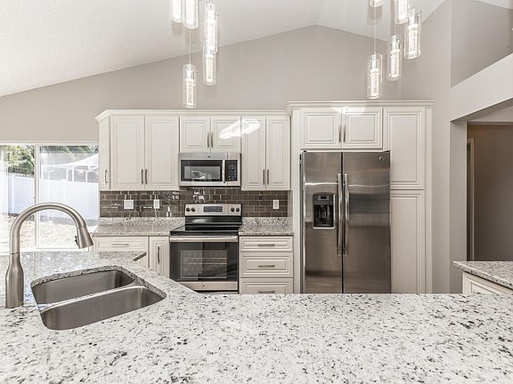 COMPLETELY REMODELED 3/2/2 POOL home with gray & white colors, upgraded wood cabinets & granite counter tops, new wood floors! AMAZING FINISHES! NEW ROOF! Newer A/C. Quick occupancy! Best Floor plan / layout around!! OPEN and spacious, HIGH vaulted ceilings, glass sliders from all main living spaces overlook the pool and bakyard! Light and bright! Nice screen enclosure allows for patio entertaining by the pool! The kitchen is open to the breakfast nook a& great room! Formal dining room or use it as an office space! The second bedroom is connected to the second bathroom, so it is a perfect guest suite w/privacy! Second bath is also the guest bath & POOL bath!! Master has dual granite vanities, walk-in shower, large walk-in closet. Close to everything! Great location! Come fall in love!
