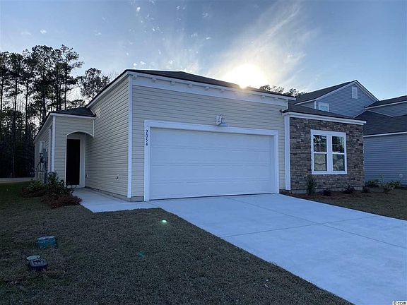 Sun Colony is a Natural Gas community that is just minutes from shopping and the beach.This home is MOVE-IN Ready. This home is located on a desirable golf course view home site. HOME HAS LONGS ADDRESS; TURN INTO SUN COLONY JUST UNDER THE LITTLE RIVER WATER TOWER READY MOVE IN HOME - NATURAL GAS COMMUNITY The Harrisburg floor plan features 4 bedrooms, 2 bathrooms with a spacious Owner's Suite, bath and walk in closet. This open concept home hallmarks 36" stylish white cabinets, 3 x 6 subway tile back splash, granite in the kitchen, Shaw laminate flooring in the main living areas, Frigidaire stainless steel appliances including a gas range. The Owner's suite bathroom highlights double bowl sinks, elevated vanity, 5' walk in shower. This home also features LED recess lighting, Moen faucets and towel hooks, elongated toilets with soft close lids, a Rinnai tankless water heater, and a 10x12 patio. Some of the Pictures are from previous model home.