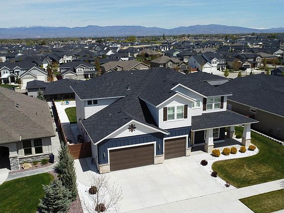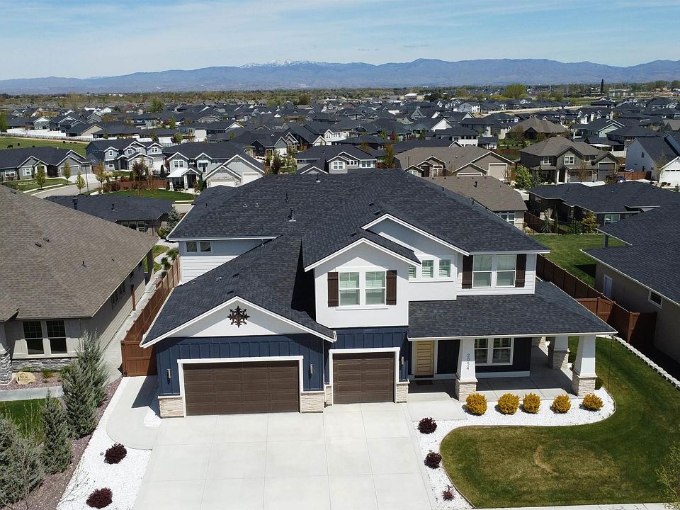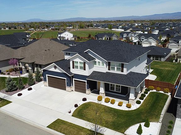 Its All About The Views - Elevated unobstructed views of the entire Boise Valley, & even the Trinity Mountains beyond. You can't get a better Northern view. Live large in this well-maintained home w/ multi-generational living opportunities. Work from home & enjoy your own private home gym. Multi-living areas w/ main level family room & duplicate Bonus Room space upstairs. Custom gourmet kitchen w/ brand new KitchenAide wall ovens & microwave & butler's pantry leading to the large dining room. Main level also features guest bedroom & bath for max flexibility. 10' ceilings on the main level, 9' upstairs, increases the sense of space in the already large home. Upstairs features a large bonus room area with amazing elevated views. Plus, three more beds & 2 baths, one being an on-suite. Master bath features double vanities, soaking tub, shower, & large walk-in closet. Watch 4th of July Fireworks, sunrises AND sunsets, amazing lightning shows, all from the covered patio or indoors via side-by-side picture windows.